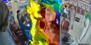 Karachi, Pakistan – Robbers were trying to rob a store when one of the worker shot them through the door.