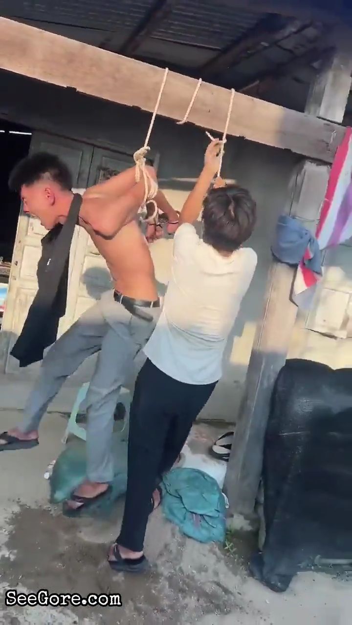 Man Hanging By His Hands Tied Backward