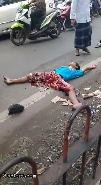 An accident happened probably somewhere in Indonesia where a poor girl got hee lower body part ripped apart.
