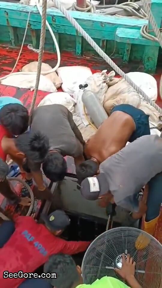 Due to gas leak inside a boat, the workers are being saved by the others.